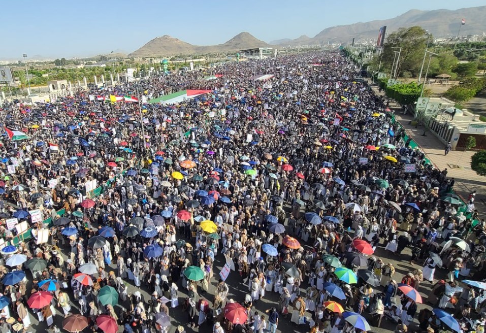 شهدت العاصمة صنعاء اليوم مسيرة مليونية حاشدة تحت شعار “مستمرون في نصرة غزة والمقدسات مهما كانت التحديات”، تأكيدًا على نصرة الفلسطينيين في غزة ورفضا للعدوان الإسرائيلي على إيران.