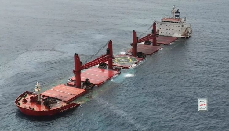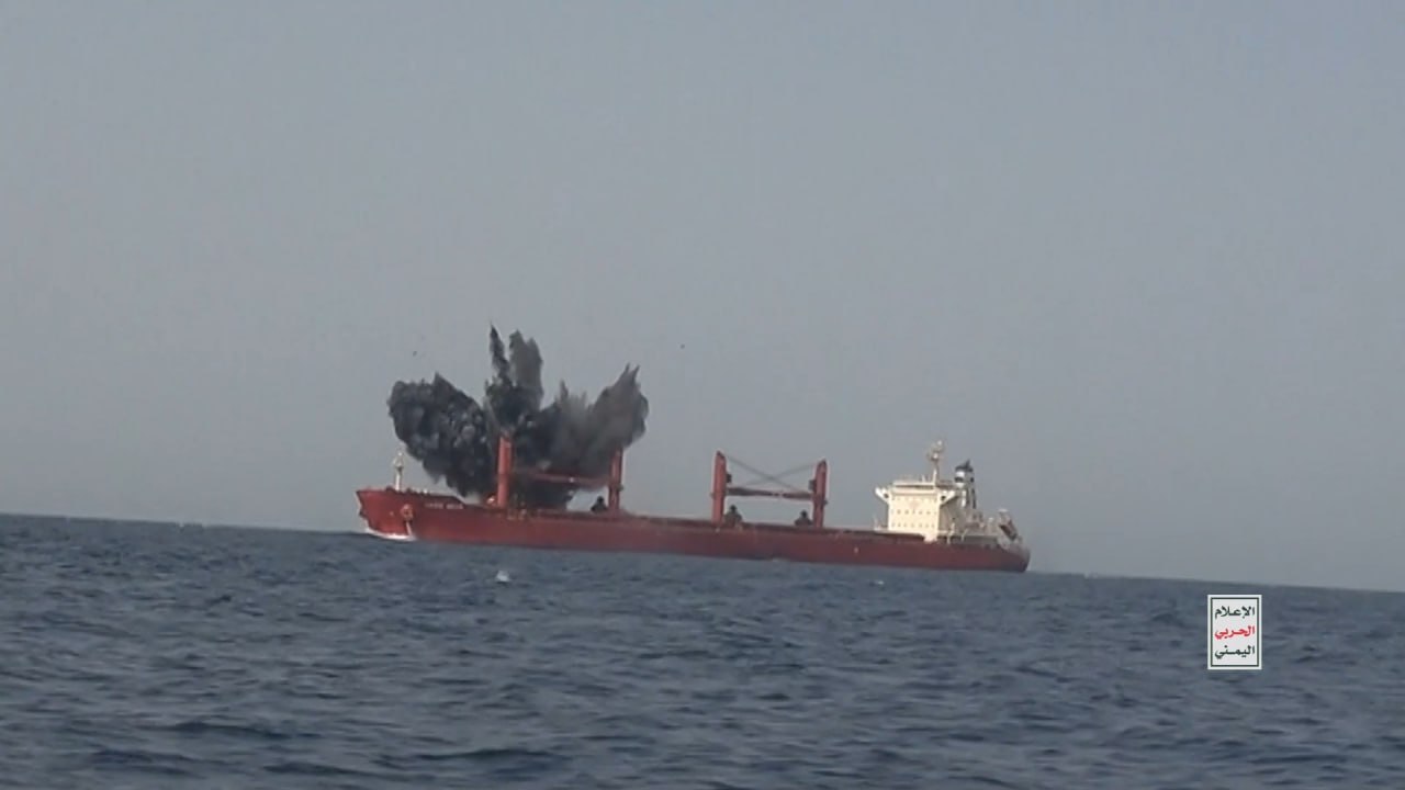 القوات المسلحة اليمنية تبث مشاهد توثّق استهداف وإغراق السفينة “ماجيك سيز” في البحر الأحمر
