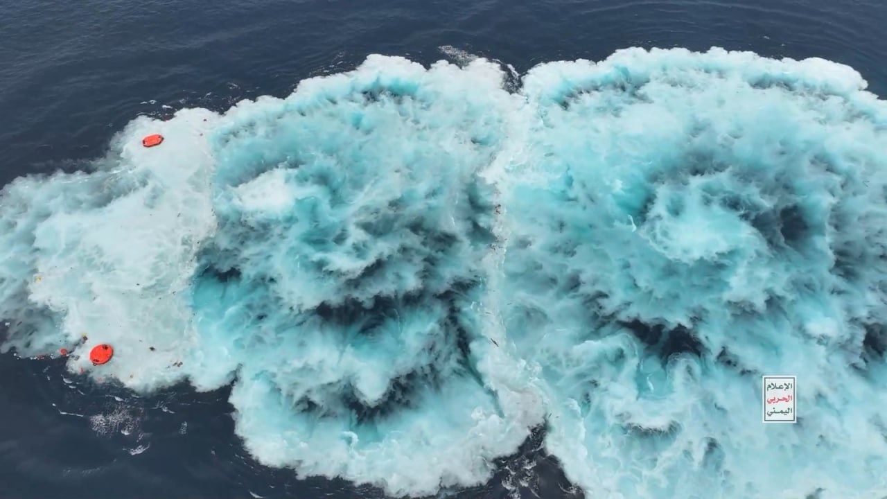 وتظهر اللقطات نهاية السفينة وهي تغوص بالكامل في البحر، في عملية وُصفت بأنها رسالة جديدة لكل الشركات الملاحية التي تتجاهل تحذيرات صنعاء وتتورط في التعامل مع موانئ الاحتلال.