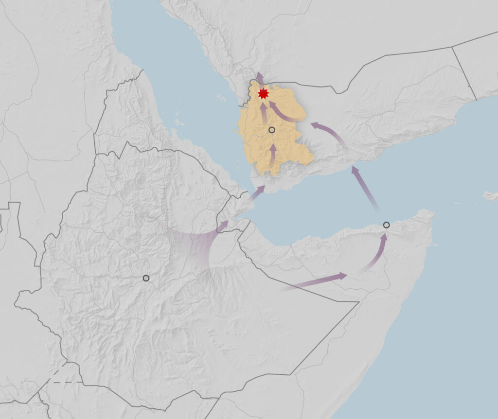 تُعتبر هذه الرحلة، المعروفة باسم الطريق الشرقي ، من “أكثر طرق الهجرة ازدحامًا وخطورة في العالم”، وفقًا للمنظمة الدولية للهجرة. وقد حاول عشرات الآلاف من الأشخاص خوض هذه الرحلة العام الماضي، هربًا من الصراعات والفقر والجفاف والقمع السياسي في دول مثل إثيوبيا وإريتريا والصومال.