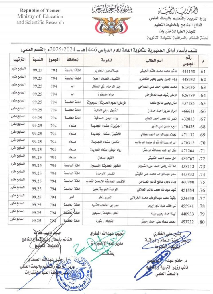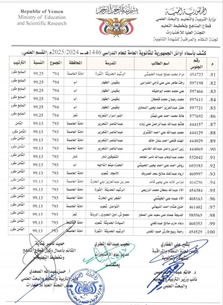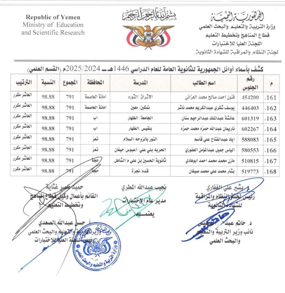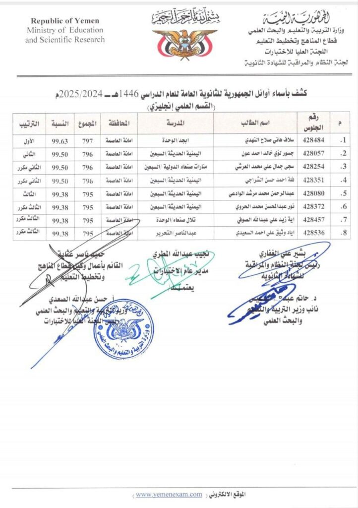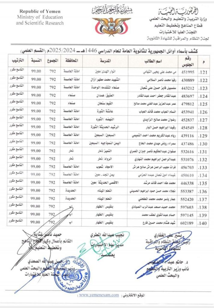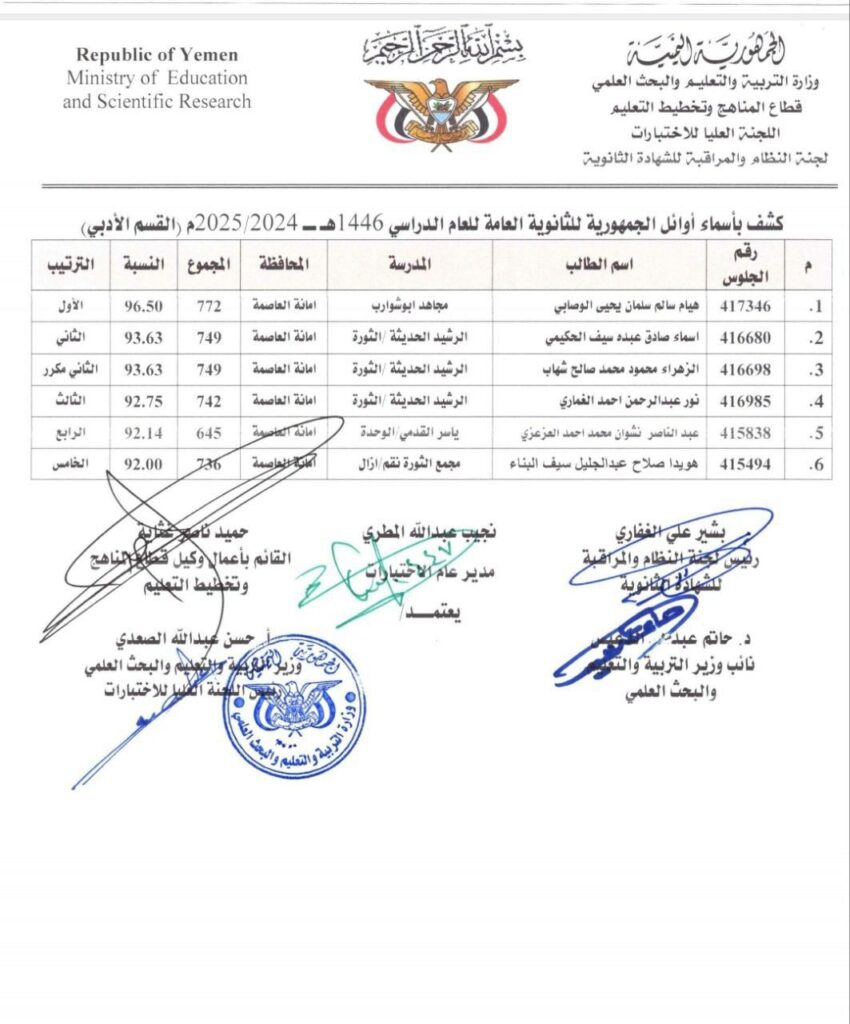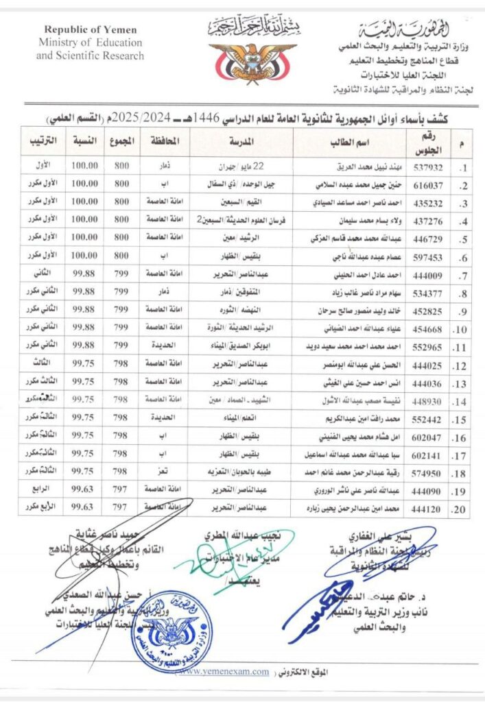 كشف بأسماء أوائل الجمهورية من طلبة الثانوية العامة للأقسام (علمي – أدبي – ع/ إنجليزي) في 15-يوليو- 2025 1٬186 خاص – المساء برس| أولاً: القسم العلمي ثانياً: القسم الأدبي ثالثاً: القسم العلمي إنجليزي شارك 1٬186