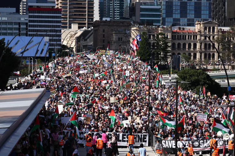 كما خرج آلاف المتظاهرين في بريسبان وكانبيرا وسيدني وبيرث وأديلايد مطالبين بوقف الحرب الإسرائيلية على غزة وفرض عقوبات اقتصادية على “إسرائيل” في وقت وصفته شبكة إيه بي سي نيوز بأنه واحد من أكبر الاحتجاجات في تاريخ البلاد.
