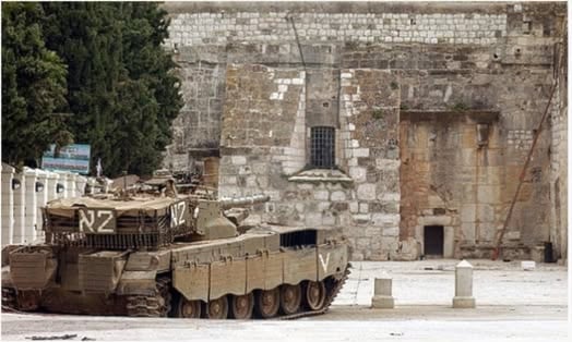 وأرفقت اللجنة بيانها بصورة دبابة إسرائيلية أمام كنيسة المهد خلال اجتياح الضفة عام 2002، للتأكيد على التناقض بين خطاب نتنياهو والواقع الميداني.