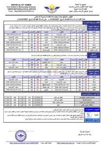 كما من المتوقع هطول أمطار متفرقة قد يصاحبها الرعد على أجزاء من محافظات لحج، تعز، إب، الحديدة، ذمار، ريمة، المحويت وحجة خلال فترتي الظهيرة والمساء.