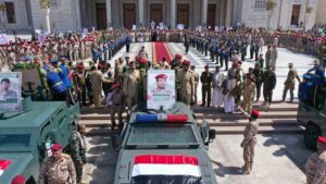 شُيّع اليوم في العاصمة صنعاء، في موكب جنائزي رسمي وشعبي مهيب، جثمان الشهيد الفريق الركن محمد عبدالكريم الغماري، رئيس هيئة الأركان العامة بوزارة الدفاع، والذي ارتقى إثر غارات شنّها العدوان الصهيوني، ضمن معركة “الفتح الموعود والجهاد المقدس”.