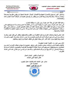 “اتحاد عمال الجنوب “: لن نقف مكتوفي الأيدي أمام استمرار تدهور الأوضاع المعيشية
