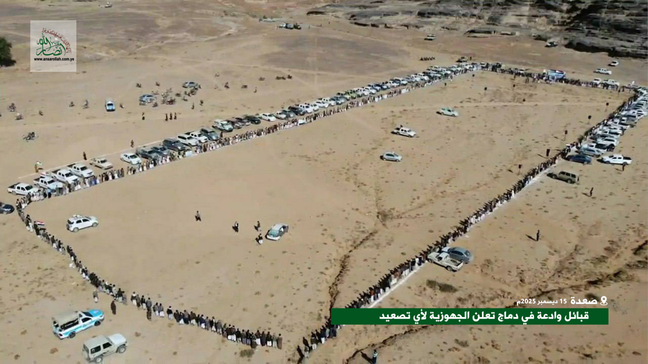 أعلنت قبائل وادعة في منطقة دماج بمحافظة صعدة، اليوم، استعدادها الكامل للتصدي لأي تصعيد أو جولة صراع جديدة، مؤكدة جهوزيتها لمواجهة العدو الصهيوني وأدواته الإقليمية، وفي مقدمتها النظامان السعودي والإماراتي، في سياق تصاعد المواقف القبلية الداعمة لخيار المواجهة.