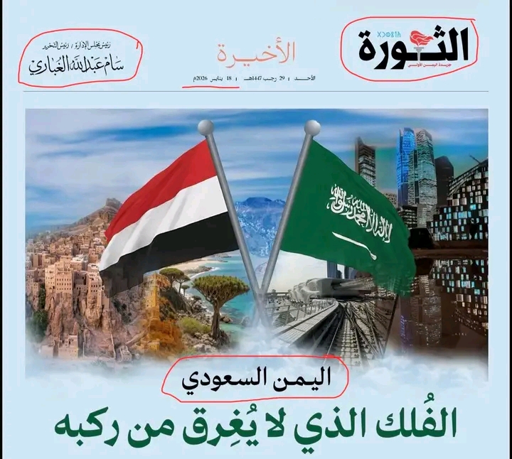 الصحيفة التابعة للمجلس الرئاسي والمطبوعة في الرياض وضعت على غلاف عددها الصادر اليوم الثلاثاء عنوانا بارزا جاء على لسان رئيس تحريرها سام الغباري وقال فيه “اليمن السعودي الفلك الذي لا يغرق من ركبه” ، وهو ما فجر موجة انتقادات حادة في مواقع التواصل الاجتماعي، حيث اعتبر ناشطون أن ما ورد يعكس مستوى غير مسبوق من الابتذال الإعلامي والخضوع السياسي.