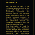 أعلنت مجموعة حنظلة عن تنفيذ عملية اختراق كاملة لأنظمة متحف “ياد فاشيم”، أكبر متحف للهولوكوست في الاراضي المحتلة، مؤكدة حصولها على بيانات شخصية واسعة تشمل زوارا ومتبرعين وجهات مختلفة مرتبطة بالمتحف.
